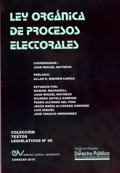 Comentario: Se reúnen siete profundos y exhaustivos ensayos, pertenecientes a destacados juristas venezolanos. Entre otros textos se incluyen "El sistema electoral en la ley orgánica de procesos electorales", "Representación proporcional de las minorías y ley orgánica de procesos electorales", "Régimen legal de las campañas electorales" y "El régimen sancionatorio de la ley orgánica de procesos electorales". Incluye bibliografía.