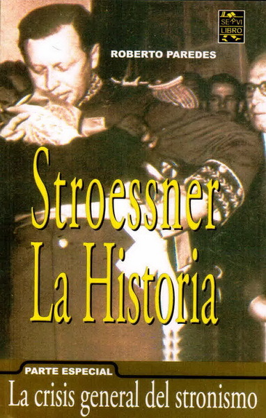 El presente estudio se divide en dos partes, la primera presenta la biografía de Stroessner, en la que se intenta reflejar de manera objetiva la vida del personaje histórico, con todos sus matices, y la segunda, dividida en 7 actos, analiza la crisis del stronismo. Incluye bibliografía y fotos en blanco y negro. Periodista e historiador, Roberto Paredes ha publicado múltiples trabajos sobre historia de Paraguay. De los que se destacan: "Los colorados y la transición"; "Los sucesos de Caaguazú"; y "El sindicalismo después de Stroesner y Dos secuestros y una estafa".