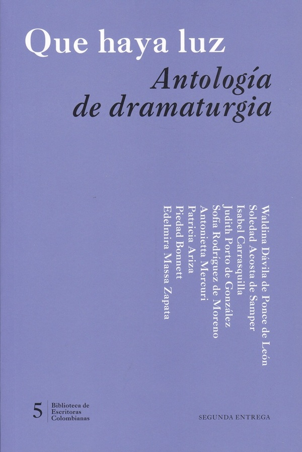 Comentario: Edición con prólogo de Marina Lamus Obregón. Antología que se centra en rescatar y visibilizar a las distintas mujeres en la dramaturgia colombiana. Entre estas voces destacan Isabel Carrasquilla, María Cárdenas Roa, Judith Porto de González, Sofía Rodríguez de Moreno, Antonietta Mercuri.